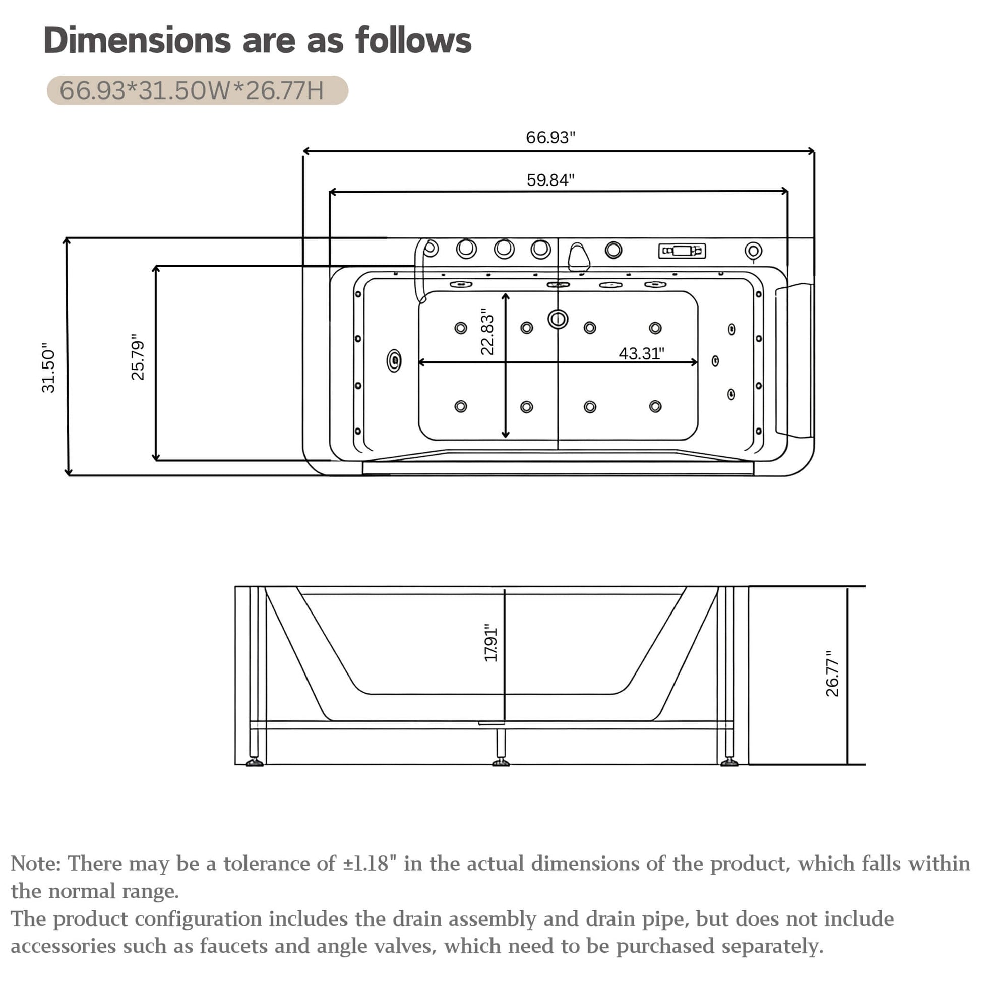 - This jetted tub features a sleek, ergonomic design with user-friendly control knobs, making it simple and hassle-free to adjust settings while enjoying your bath.